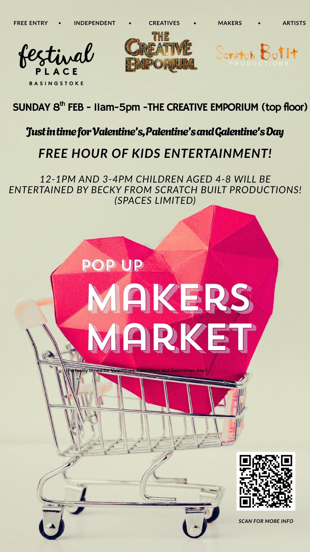 There'll be free entertainment by Becky from Scratch Built Productions for children aged 4-8 years at 12pm to 1pm; 3pm to 4pm. Spaces are limited. Click on the link to find out more.